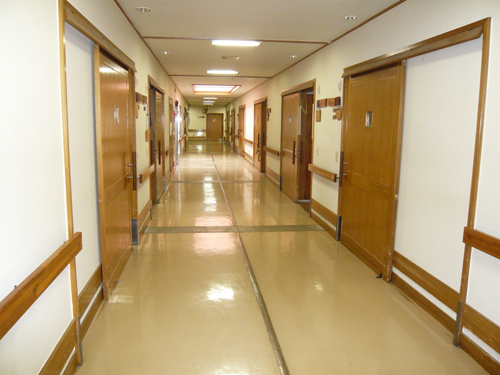 | 次は居室を見学しました。 廊下は明るく広々としてました。 |