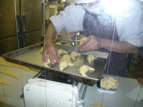 | 製パン 食パン、菓子パン、パウンドケーキ、クッキー、サブレなどを作っています。計量から袋詰め、販売まで、皆が協力しながら能力を伸ばせるように工夫しています。柔らかめのパンを主に作っていますので、老人ホームなどでも喜ばれているそうです。 これはクロワッサンですね。この巻き方はプロの職人技ですよ。管理人も元料理人なんで少しは分かります。 普通のパン屋さんです。 |