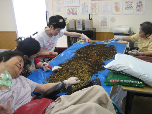 私たちのグループの最大目標は仕入れから販売に至るまでの一貫した活動を目指しています。いまの活動内容としては菜園と紙すきに取り組んでいるところです。